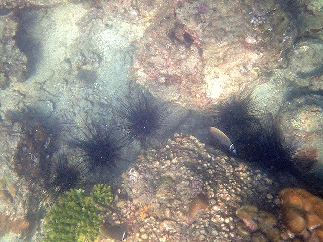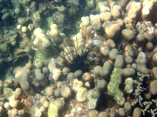 发现一只海胆,这刺有够长的,阿艇说要是被海胆刺到可能后果很严重,哈哈。。。想想平时吃的海胆都是被剪过的,第一次见到真面目呢。。