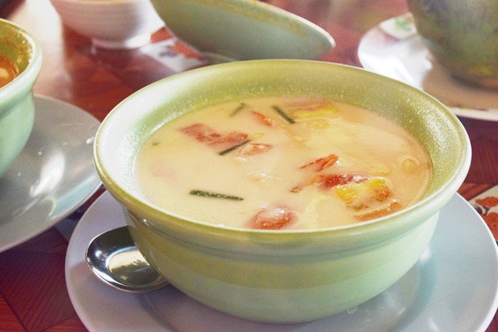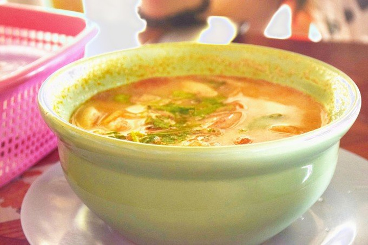 冬荫功汤是一道泰国名汤,典型的泰国菜,是世界十大名汤之一,在泰语中,“冬荫”指酸辣,“功”即是虾,合起来就是酸辣虾汤了。冬荫功汤是将辅料放入桶煲至出味,而后放入大头虾、鱼露、草菇、花奶、椰汁等一起炖煮,酸味鲜美开胃。这汤以色泽全红,汤味馥郁可口,辣度十足的为佳。