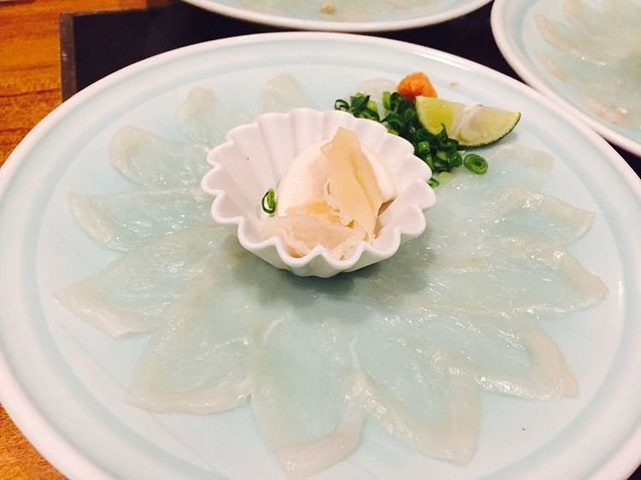 晚上和几个小伙伴已经逛到腿软,拎到手软了,误打误撞在心斋桥走进一家门帘不大的小餐馆,没想到竟然是吃河豚的,好赞!从前菜到最后一道粥,包括河豚皮沙拉,烤河豚,涮河豚,炸河豚,河豚汤,清一色全部都是河豚为主,各种做法,撑到不行,5个人花了28000左右日元