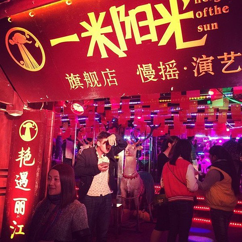 一米阳光的旗舰店, 在酒吧街很显眼,我没有去。 不喜欢太吵的地方,来这么一个地方难道不应该找个静静人少的酒吧点一杯从未尝试过的鸡尾酒,听一个晚上酒吧歌手唱歌吗。 我记得我们走的那天酒吧街还打起了架,太商业化就不好了,感觉就跟北京的后海似的,一堆酒托就在门口招揽客人。 在酒吧街我们还遇到一个唱戏般 的人在路边, 等我们拿出手机拍完照, 就有人来收钱了。