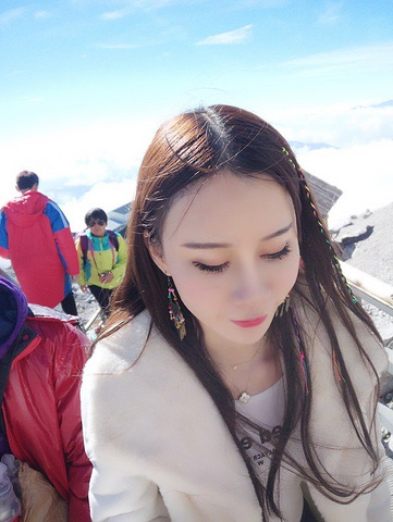 我只穿了一件棉袄加一件衬衫, 导游给的红色大棉袄并没有穿, 女人果然是耐寒的动物。 听说爬的越高,肺活量越大的人更容易高反, 而我平常不怎么运动的人,我慢慢爬基本一点事都没有。 同行的一个健壮的东北大哥哥已经嘴唇都发白发紫了。