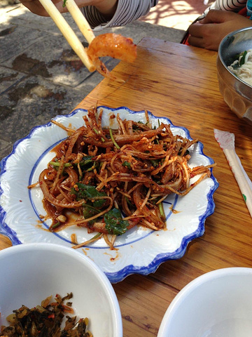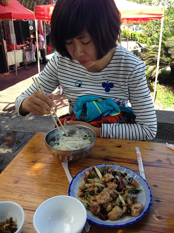 多亏上山前吃饭了!要不就饿死了! 记得有个生肉! 地方特色,那个面条具好吃!这个大排档都是当地人在吃!