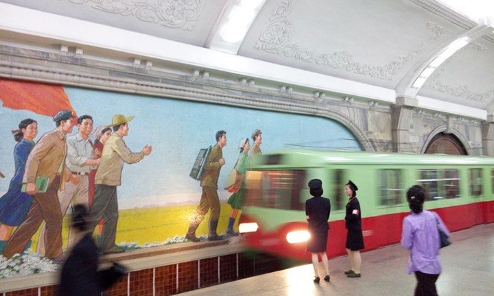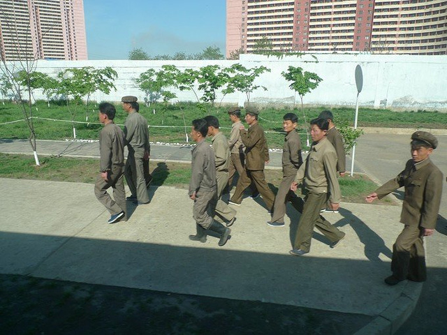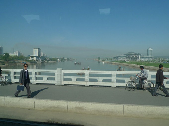 平壤给人印象最深的不是这些老旧的汽车,而是路上走不停的人们,城市街道、田间地头、男女老少、高矮胖瘦……走走走走走啊走……城市里女人们一律脚踩高跟鞋,粗跟的那种,连一些初高中生都不例外,郊区乡间偶尔还会看见头顶货物的。平壤的早晚高峰,没有车水马龙,没有交通拥堵,有的是人行道上的“急行军”,好多学生模样的孩子一连走路一连看书。朝鲜人喜欢背着东西走路,一路上看不到像样的背包,更多的是破布包,就好像以前行军打仗的背包。