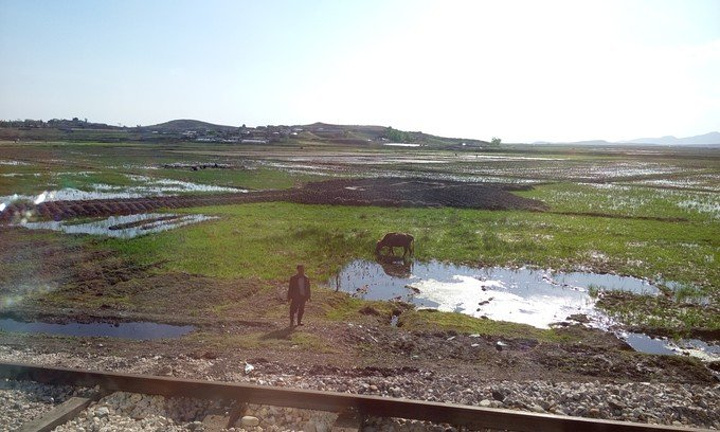 这样也好,让我有了更多的时间向窗外张望。如果换做平时,我早就睡到天荒地老了,可是这次不同,我舍不得时间睡觉,生怕落下每一个生动的场景。我心里明白,我很难再来一次朝鲜了 ,即使真有再来的一天,窗外的场景也会大不相同吧。我的手机没有拍照隐藏功能,所以我不敢“胡作非为”,只能乖乖的仔细的认真的看一看窗外的景色。