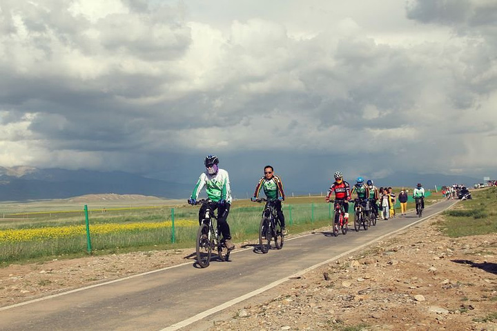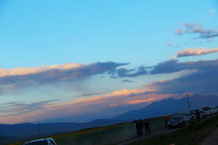 眼巴巴的看着骑行青海湖的队伍是一批一批轻盈地掠过~~~现在已经下午四点多,堵了两个多小时。