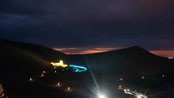 只是月牙泉没有太大的惊喜,可能得很高的位置才能看清吧,倒是晚上亮灯的时候蛮漂亮的。