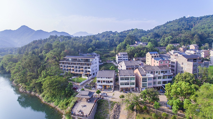 从空中看,被山林围绕最壮观的建筑就是 “君兰-江上” ,咫尺之间的楠溪江,小小村庄中藏匿的田园风情。