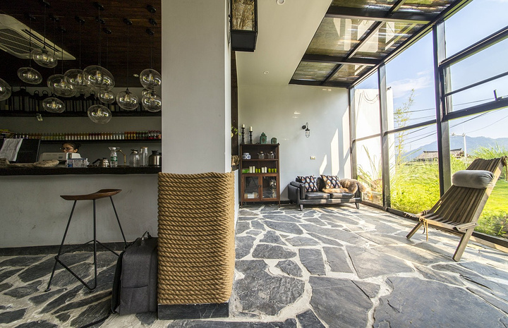 民宿一楼就只有这么一个大厅,满是书籍的墙壁,简易舒适的桌椅板凳,不论是偏向农家田园风,还是古典欧系风范都能在这里找到你最钟意的位置,携三两朋友小聚于此,不甚乐乎!
