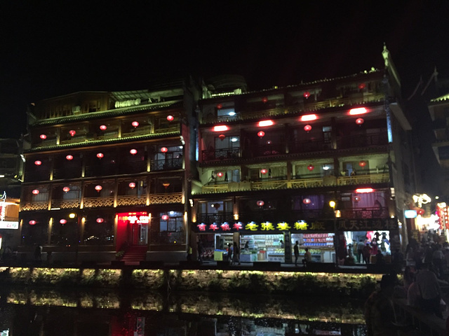 到凤凰已经8点多了,去了客栈放了行李,就赶紧出来沿江看了一下沱江的夜景。客栈老板娘说主要看夜景。逛到12点才回去