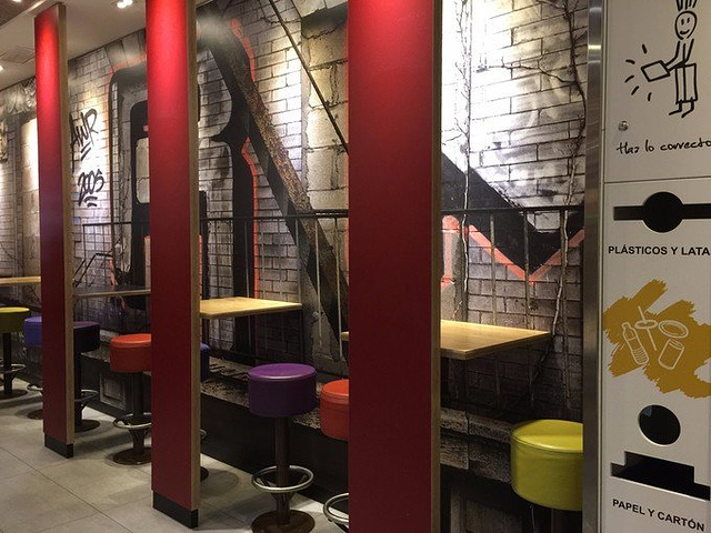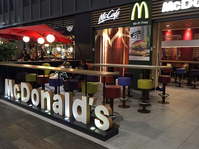 车站一层色彩缤纷的麦当劳