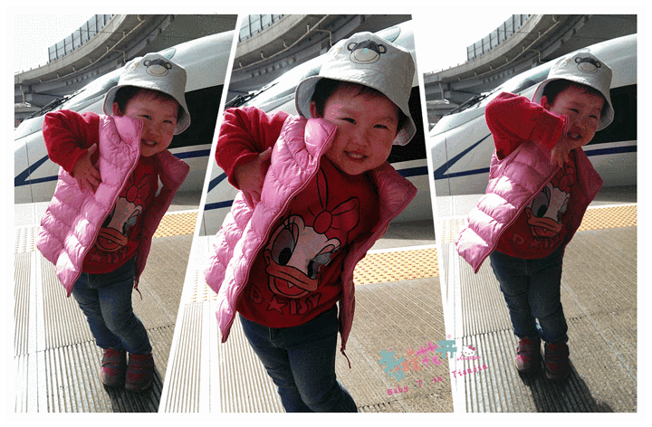 早上十点的火车,车站里,火车旁,都不忘摆拍的小孩,第一次坐火车的人儿大概都这样!