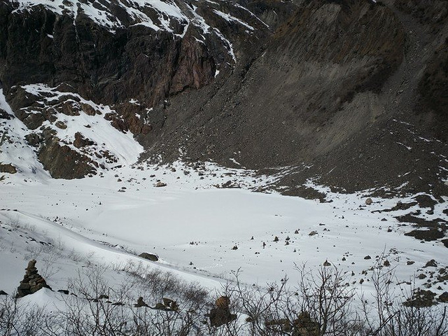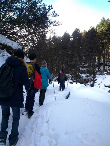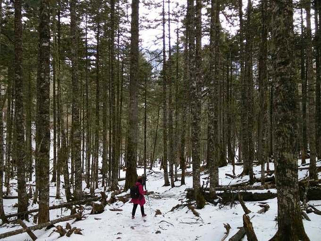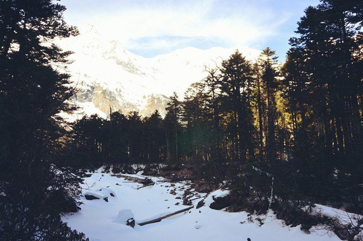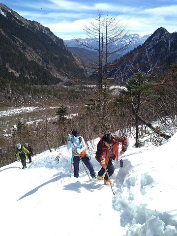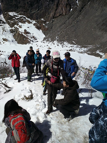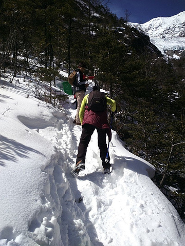 中午在大本营休息过后,几个小伙伴决定不去冰湖了,在废弃的小木屋里烧火取暖,掂量着身体还能吃得消,我跟随大部队继续前往冰湖,没想到体验了一把连滚带爬式的徒步以及身心俱疲的劳累,在将军峰前竟然有想哭的冲动。