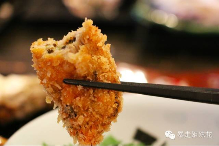 炸牡蛎。牡蛎裹上蛋清面糊和面包糠炸熟食用,火候掌握得极好,明明是油炸牡蛎,却吃到各种流汁水。用餐的时候,我分明能够清清楚楚听到店内上空不断回荡的各种“O YI XI”(日语“好吃”的意思)声音。