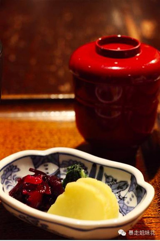 这里的海馒饭和日本常见的鳗鱼饭做法不同,不是一大片完整的鱼肉,而是切成一片片,呈鱼鳞状盖在米饭上,底下的米饭应该是用鱼汤煮的,吃起来有淡淡的咸鲜味。