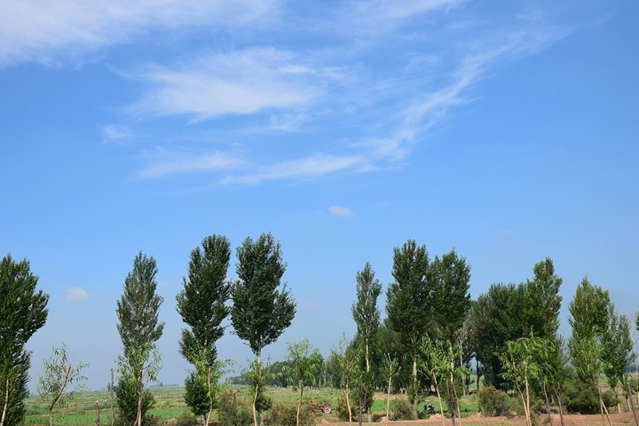 第二天一早就起来了,旅店给提供免费早餐,由于出发的早,所以盖了旅店的发票章,出了旅店,准备去乌梁素海看一下,但是距离太远,只能下次有机会再去了,今天的天气不错,采购了今天的干粮和水,继续我的旅途。