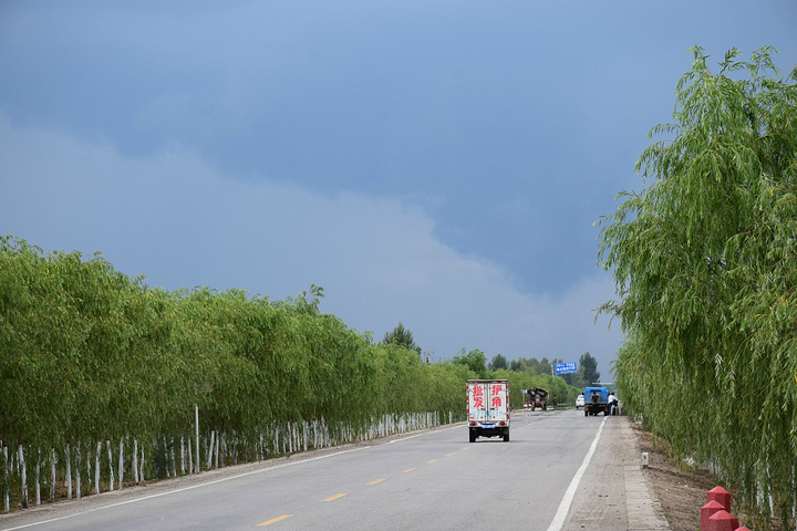 出了前旗,就开始逆风前行,早上国道车很少,路两旁不时出现湿地沼泽,还有不知名的鸟儿在头顶盘旋,今天骑车的速度明显不如昨天,而且前方还在修路,断断续续的。骑了没多久,前面的一辆铲车挡在我前面,正好给我破风。早上十点多的时候,到了五原县境内,却迟迟看不见五原县城。停下车子在路边拍照,旁边的瓜农喊我去他的瓜摊前请我吃瓜,特别热情,我们没东没西的聊了半天,两个香瓜已下肚,临走时,他从身后的瓜地又摘了几个香瓜,塞到我的包里,我给他钱他也不要,我只能偷偷的把钱压到他的瓜摊下,道了句谢谢继续上路。这世上谁都不容易,我怎能白吃白喝呢?更何况吃白食不是我的性格。临近五原县城的时候,大片的黑云压了过来,看来是风雨又要来了,顶着大风继续前行,到了一个加油站的时候,天上不断地掉下雨滴,我一看这个势头,急忙躲进加油站避雨,我的自行车还未停稳妥,大雨就从天上倾泻而下,加油站的工人喊我去他的屋里避雨,我的大泥脚在干净的地板上踩出一串印子,本来想找工具打扫的,但好心的大叔说不用,我只能厚着脸皮坐着了。