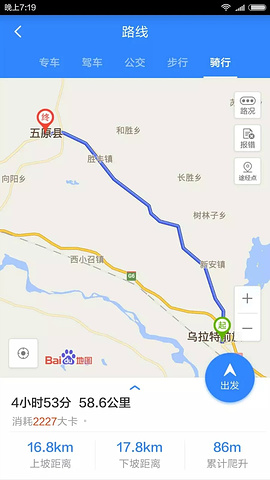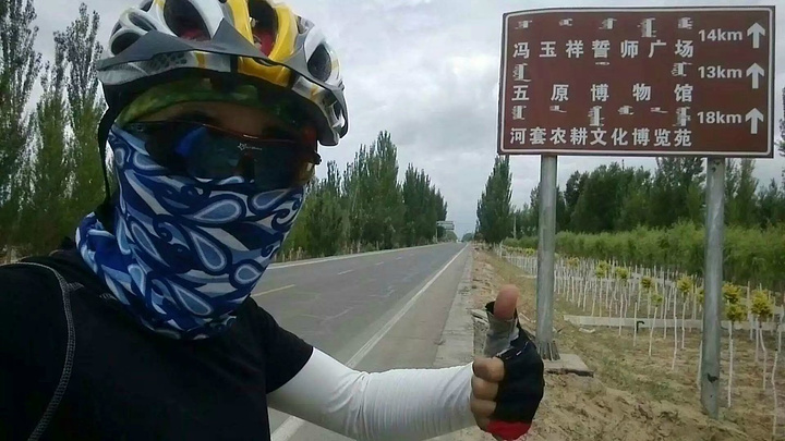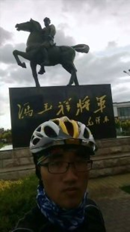 半个小时后,雨势渐小。我谢别了加油站的工人们,继续前行,在五原县瞻仰了冯玉祥将军的雕塑,盖了邮戳,吃了午饭,休息到下午一点多,往临河方向奔去。下过雨后,天气逐渐放晴,又一次和毒辣的太阳见面,不过下午的路好走很多,但是屁股慢慢开始有点疼了,走走停停,一直到下午六点多到达八一乡,吃过晚饭,还依稀能看见太阳的影子,这里离目的地临河不算太远,所以选择继续在路上,晚上八点四十到达临河,找到住的地方已经九点多了,今天的赶路,已经让我精疲力竭,打算明天找同学玩一天,好好休息一下。