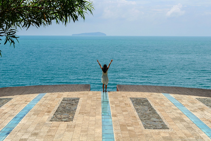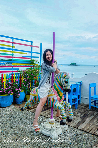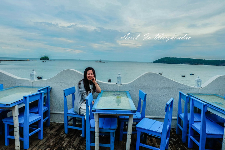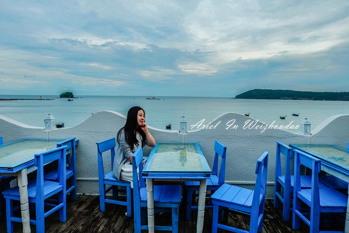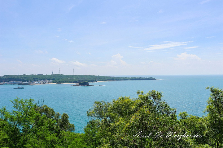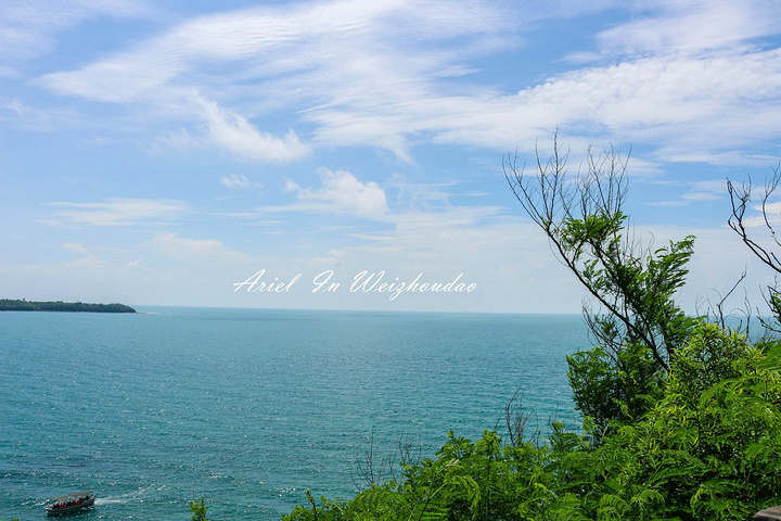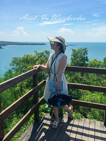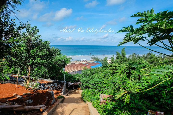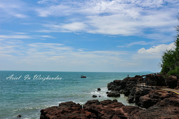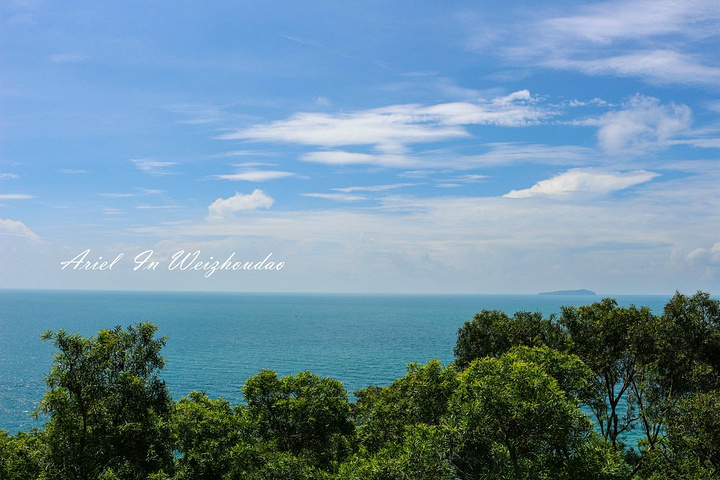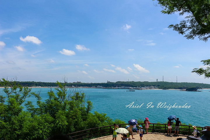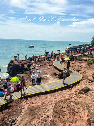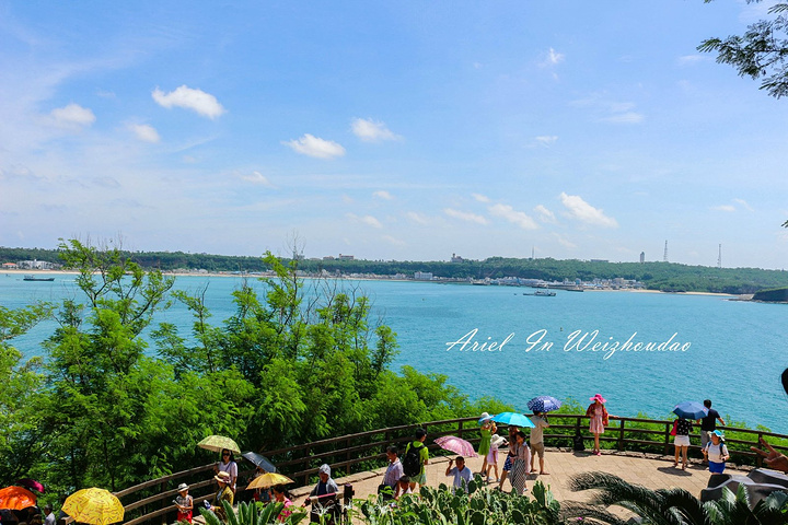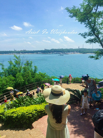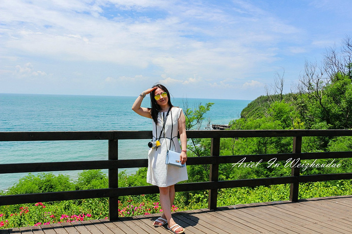 沿着台阶走了5分钟不到,眼前就豁然开朗了,一片蔚蓝的海景,瞬间让我们忘记了景区游览的疲惫。赶快拍照、赶快拍照。