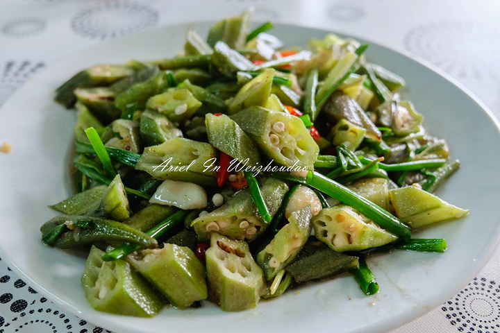 今天的晚餐,就在镇上的小店里解决了。两盘海鲜炒粉&一盘辣炒秋葵,简单却又营养丰富。吃饭时,发现原来镇上很多小店都可以海鲜代加工,无须大老远买回酒店加工,这边近、价格也和酒店差不多,说不定味道还比客栈的好呢。