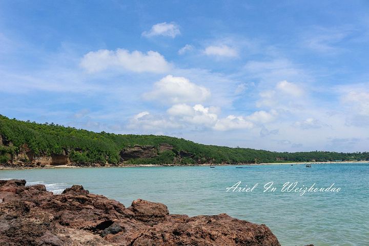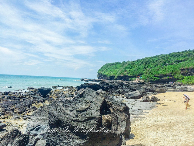 看见没看见没?这就是火山地质公园,蓝天、碧海、绿树、白沙以及摊岩,好好好好漂亮啊!走两个小时也是值得的。