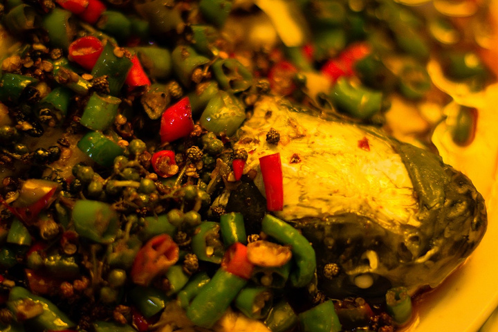 辣椒遍地, 不对,,还有花椒!但是当我吃下第一口的时候, 入口即化的鱼肉,味道已经入了鱼肉,辣的眼睛冒花。
