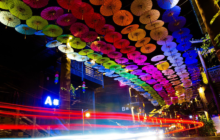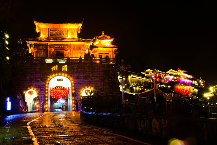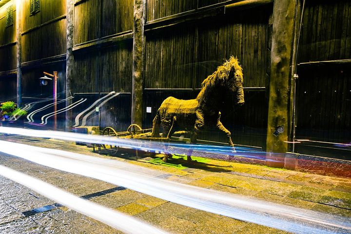 冒死的我去拍夜景了,在安静的古镇里我第一眼想到的就是拍光绘,但是无奈天太黑,但还是玩出了新意!