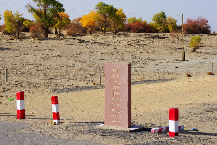经过了世界上最长的砖砌公路,这段公路是国道218线,自K931至K1033,共计102公里。位于新疆塔克拉玛干沙漠东缘若羌县境内,距库尔勒245公里,于1966年8月开工建设,1971年5月竣工投入使用。2002年,该路获“吉尼斯世界之最”纪录,称“世界上最长的砖砌公路”。