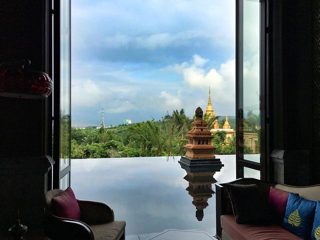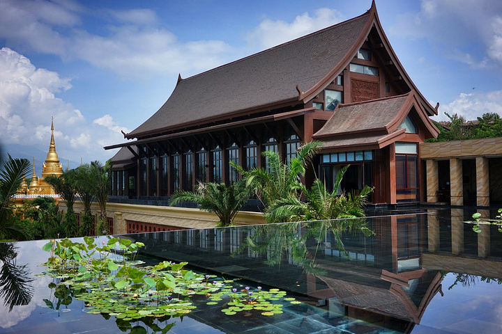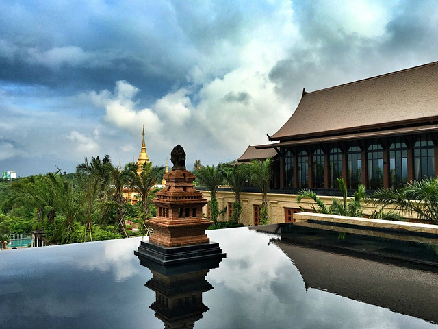 西双版纳的万达文华酒店位置不算闹市,离市中心泼水广场半小时左右车程,离机场20分钟左右车程,旁边有万达广场。