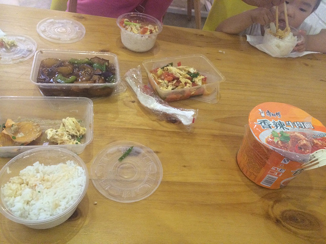 美团就是方便,点了一份鸡蛋炒西红柿、一份地三鲜、三个扇贝、三碗米饭,71元,很快就送到楼下了!
