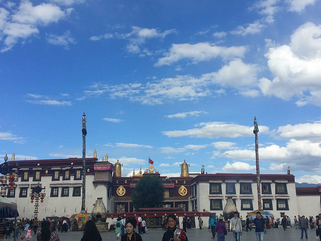 顺利的领到布宫预约票,前往药王山探寻50元人民币背面的取景角度,能更好的观看布达拉宫的壮观。接着前往八廓街感受拉萨的繁华地带,找到光明港琼甜茶馆解决了午餐,一杯甜茶、一碗藏面,感受藏民的日常生活。沿着小路漫步,遇到了仓姑寺,在门前的茶馆里坐坐点杯甜茶,味道很好。转过小胡同,来到闻名遐迩的大昭寺,看着虔诚的人们一遍遍的磕着长头,很是动容。我们在大昭寺的主殿转了N圈,蹭了好几波讲解,其实每个人讲的都不尽相同,不讲究太多的前提下蹭讲解是很完美的。