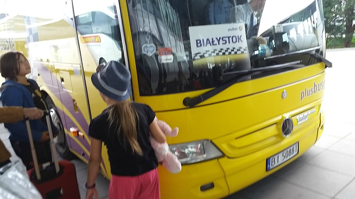 走没多远就看到汽车站了,走过去看到了去比城(Białystok)的大巴,有一个车的前面写有比城的牌子,我问司机去不去他说去。但是说的别的一大堆我就听不懂了,看样子不是要走的样子。又问另一个车的司机去不,说去,并且有人在上车。我问在哪买票说在车上买,问欧元能用不说不能用得用兹罗提。