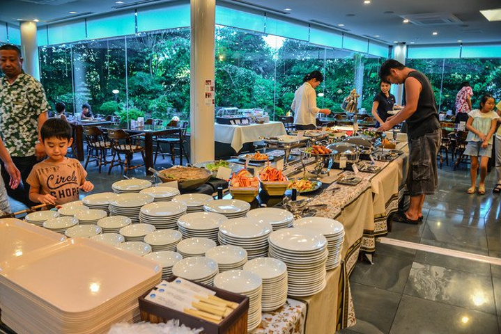 由于不想错过SPA Resort Hawaiians闻名已久的草裙舞表演,所以今天就提早回到了酒店Hotel Palm Spring,晚餐是自助,餐厅不大,但菜品依然非常丰富,这对连续吃了五天会席料理的我也算是一种调节。