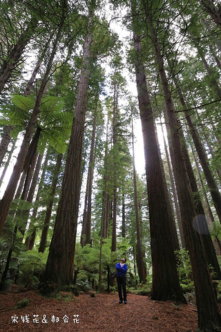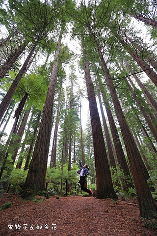 最后来到美丽的红树森林,它因林中生长着笔直高耸的加利福尼亚海岸的红木树而得其名。森林面积很大,红树一颗接一颗参天而起,遮天蔽日,只有树缝中透进来些许微光,我们到的时候已经是傍晚,光线更加昏暗,营造出一种神秘的气氛。树林里地面上都是红木落叶,一层又一层铺的厚厚的,踩上去很松软很舒服。空气中负氧离子含量很高,很多当地人在此跑步或快走,真令人羡慕嫉妒恨啊!我们只能猛吸气,尽量多吸收一些天地精华。红树林里还生长着新西兰的国树——银蕨树,银蕨树叶的背面是银色的,用灯一照闪闪反光,传说能够指引迷途的毛利人回家。