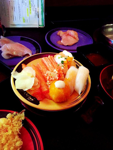 到了Central world找到了隔壁的ZEN寄存了行李,我们就开始找吃的了。为了放肆一顿就去吃了自助餐转动的一盘盘是涮锅的材料反倒是寿司什么是自己去拿的蟹肉条真的是蟹肉啊,一点儿面粉都没有看我们的战况来自游记见到不一样的你,认识泰不一样的自己