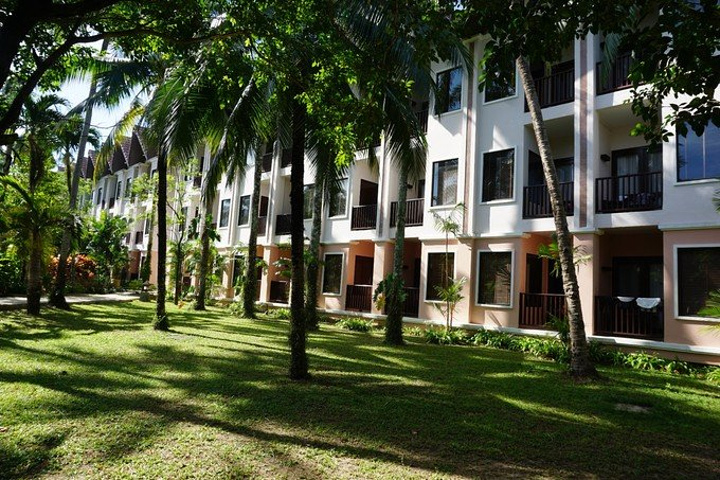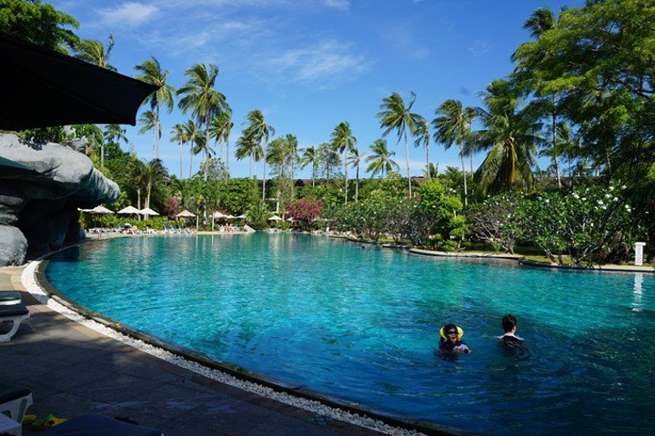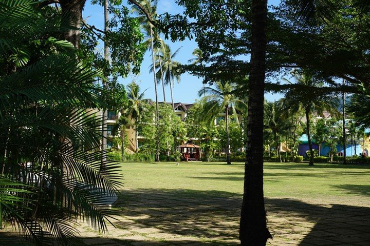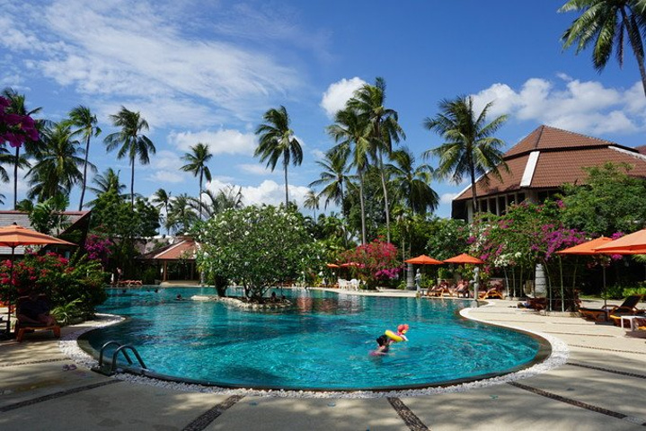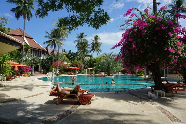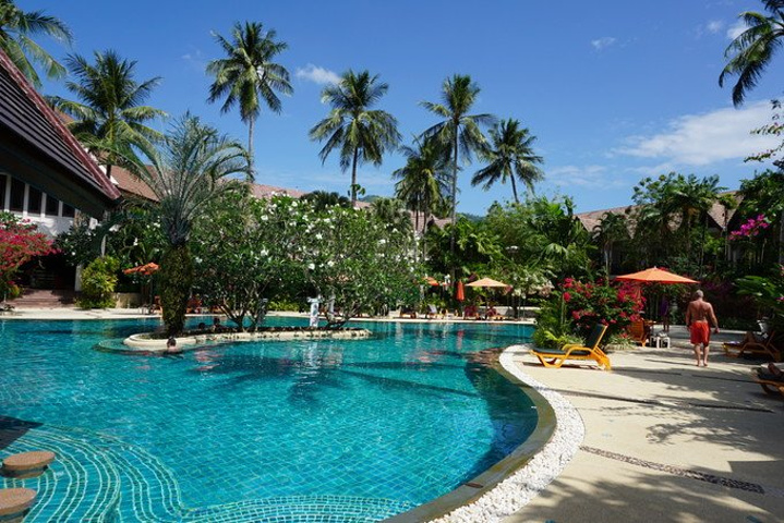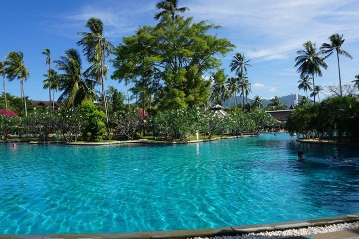 考虑到本次是休闲放松之旅,所以全程不换酒店,因为不喜欢居住得太远,生活不方便,所以选在了芭东区的心爱度假村(Duangjjtt resort&spa),非常推荐这家酒店。这家酒店是一家较老的酒店,但是各项设施一应俱全,酒店的占地面积非常大,有树林,有草地,游泳池一大一小,位于两处,整个酒店更像是一个公园,非常适合全家出行,感觉在酒店懒懒散散就可以玩一天。酒店位于芭东区,距离芭东海滩,走路5分钟就到了,距离江西冷,走路需要10多分钟左右,也可以乘坐tuk tuk车。距离simon人妖秀,走路10分钟。虽然酒店位于繁华地带,但是丝毫不影响酒店的宁静,正是因为酒店面积大,所以居住的房间非常安静。游泳池人也不多,很多外国人睡在躺椅上晒太阳,看书,很安静,感觉时光整个都慢下来了。