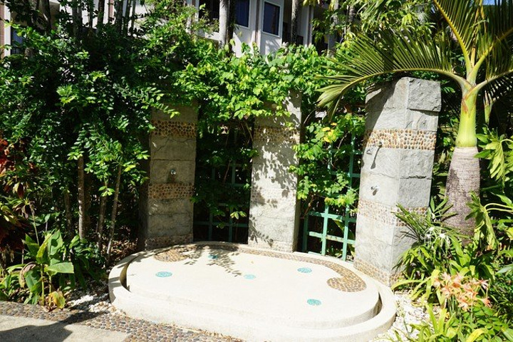 泳池边会围绕有几个这样的淋浴冲洗的地方。
