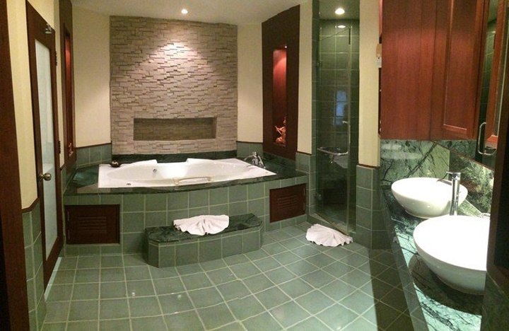 这是二楼的巨大卫生间,淋浴和浴缸是分开的区域,左边的门里面是马桶,两个盥洗池。之前看到很多网友说,普吉酒店不提供牙刷和牙膏,但是这家酒店全都提供,牙刷、牙膏、拖鞋、浴袍、矿泉水免费、冰箱、保险柜......都有。