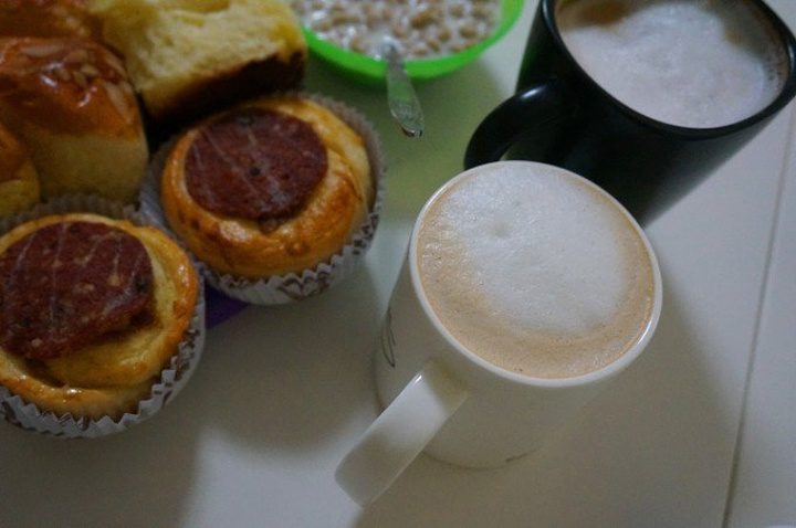 一早起床,赶紧做了早餐,喂饱了我们这三口,出发火车站~看看这咖啡,可是咱55版里活动得的咖啡机做的呢,面包也是自家出品,绝对的健康无添加~