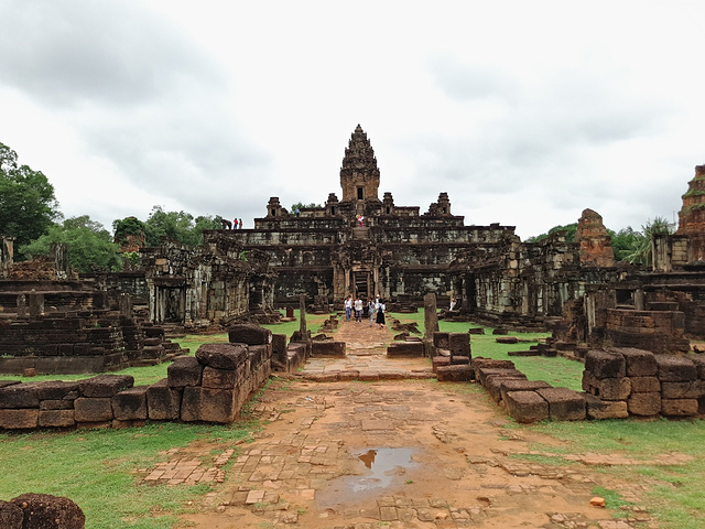 今天游大圈,距离酒店较远,又因为两天下来有些审美疲劳,所以只定了两个景点。今天有旅游团,人比较多,SA LONG说可以在里面游2个小时,我们在里面待了半小时就出来了,然后去了罗洛士群。罗洛士群分3个点,巴空寺,神牛寺和洛雷寺。神牛寺和洛雷寺没什么看头,巴空寺却很漂亮,一路走进,道旁的花开满了枝头,神清气爽。该寺为吴哥国王建立的供奉印度教的国寺,塔尖分5层,分别代表5种神的世界。逛完已是下午2点多,饿到发疯,叫司机带我们回酒店附近,最后去了KFC,试试跟中国有什么不一样。下午酒店休息,晚上又去了第一晚去的大排档,逛了另一个夜市,没有淘到喜欢的东西。