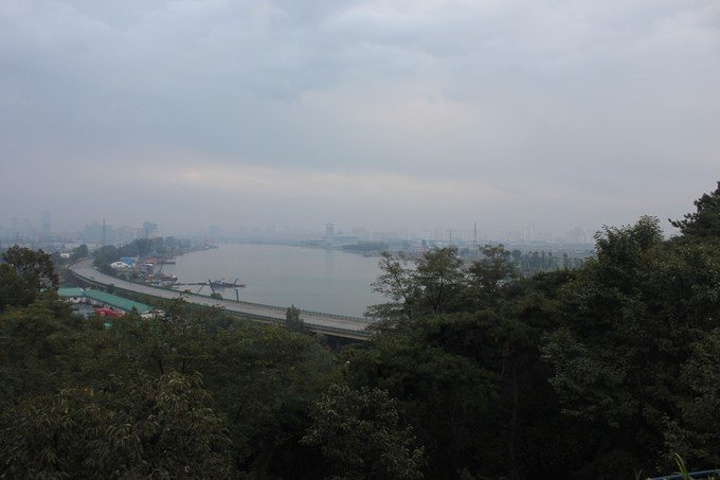 早上起来,推开阳台门,好美的一条大同江,水雾氤氲中蜿蜒而过。酒店周围散散步,凛冽的空气惹得人不由深呼吸。