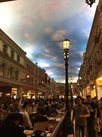 往里走看着路牌先到大运河美食广场,威尼斯人里面没什么吃的店,只有美食广场和一家自助餐,