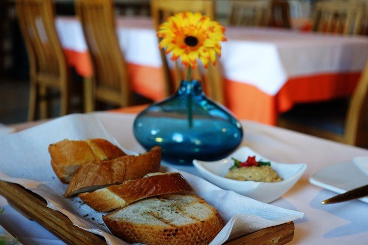 很朴素的蒜香面包,搭配了蒜味厚重的酱泥,有点咸、咬着有点费劲。