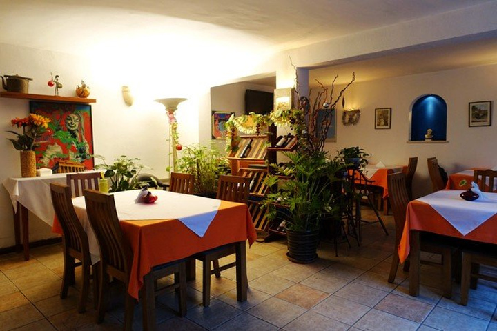 四合小院、二层小楼,天暖了还能优哉游哉的露天沐浴阳光,包场的感觉让整顿饭变得更随性了。希腊主题餐厅,还有装饰的壁炉,两侧是手绘的爱琴海,多了几分浪漫。