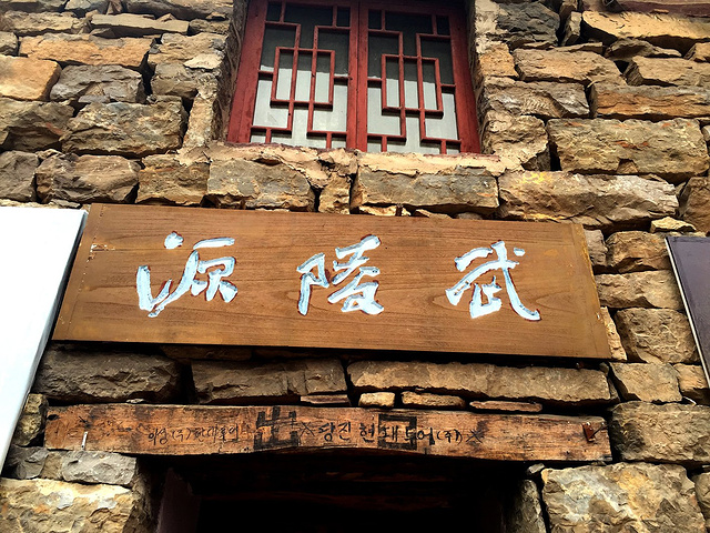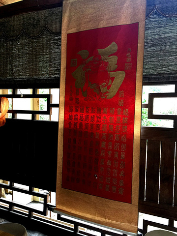 在途中一凉亭小憩,喝了一瓶茶派,还有店家墙上的福字。