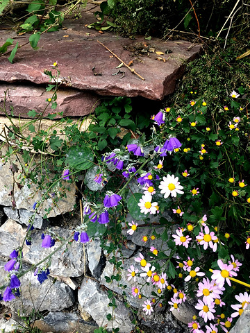 岩壁上的白野花