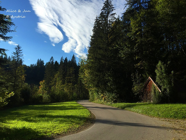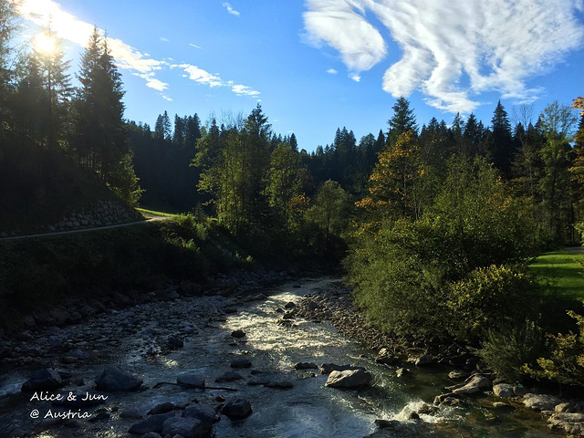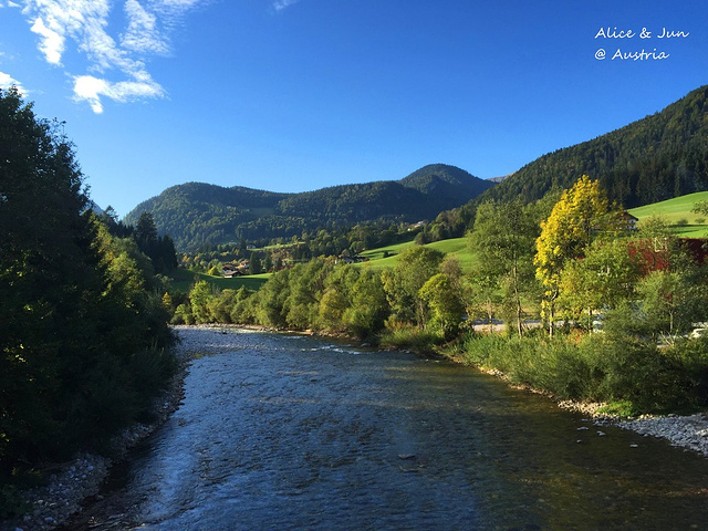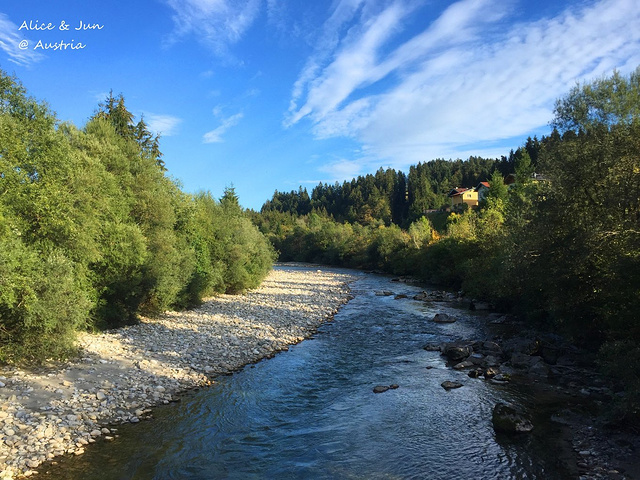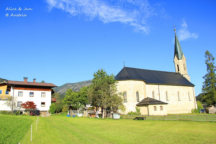 一路自驾,路过优美之地,停车观赏拍照。阿尔卑斯山区东部小镇,有着很多相似之处,高山、流水、教堂、绿地、牛羊,构成了优美的田园画卷。即便是路过任何一个乡镇,随便进去散散步,也能体会到这样的风情。