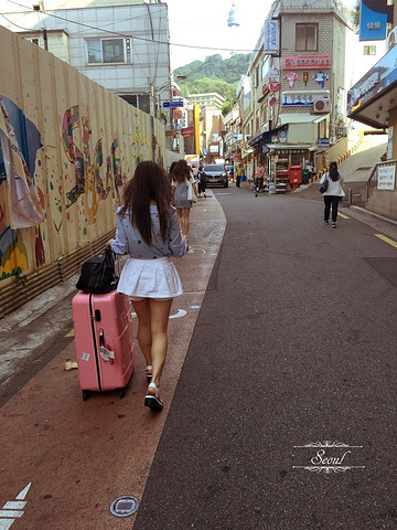 我们是7号晚上从成都飞广州,然后在广州住一晚,第二天一早飞首尔。到达首尔仁川机场大概是下午一点钟左右,取行李,坐大巴,找旅馆,差不多四五点才达到。拖着我们的大箱子去旅馆的路上,抬头就可以看见首尔塔啦。来自游记向着首尔,发动逛吃逛吃的火车