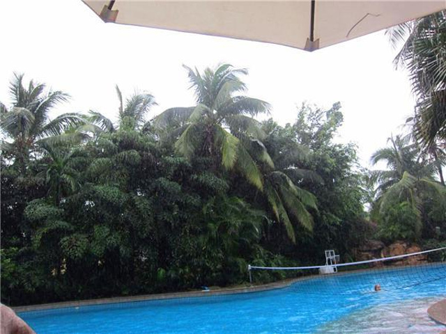 中午开始大雨下个不停,就在酒店泳池玩了一下午水上排球和篮球