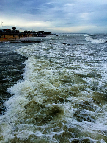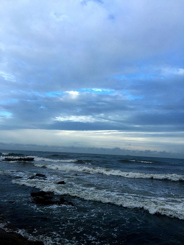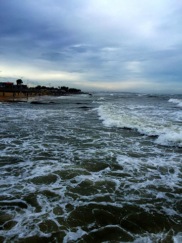 第二天,依旧哗啦呼啦的下雨,但总也压制不住一颗想见到大海的心,于是开上车,向海边进发,大约3分钟就到了海边,雨下的有些大,只能坐在车里望海。