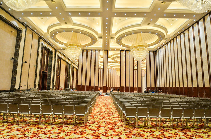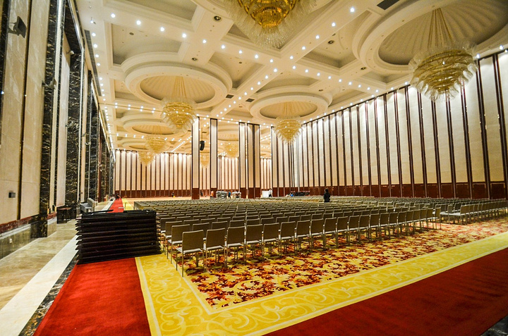 站在会议厅的正中间的位置看这个会议厅是不是很大,很奢华呢?对了,这只是部分会议厅合并的,如果把所有的小型会议单厅打开连在一起堪称是庞大气势的艺术品了。